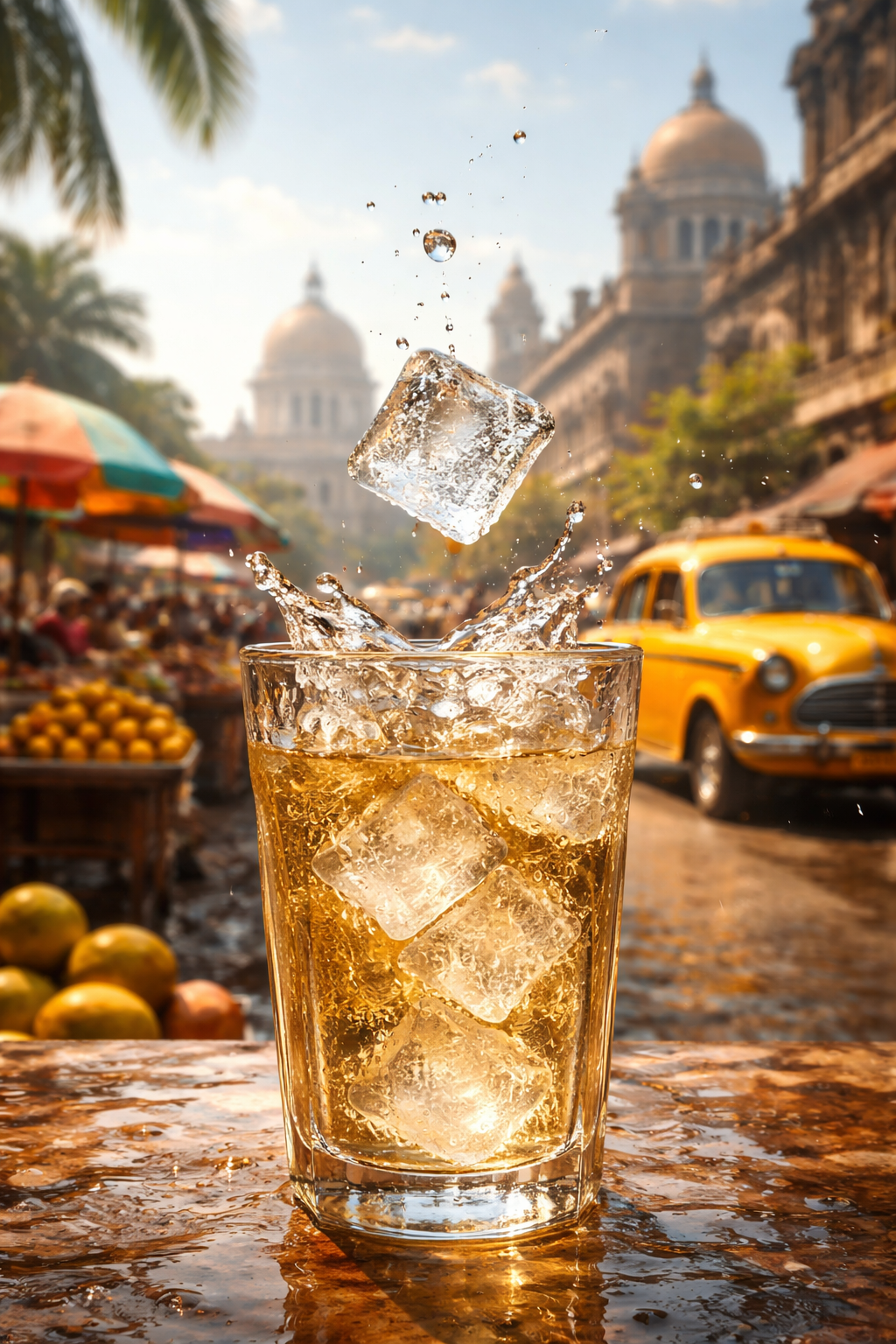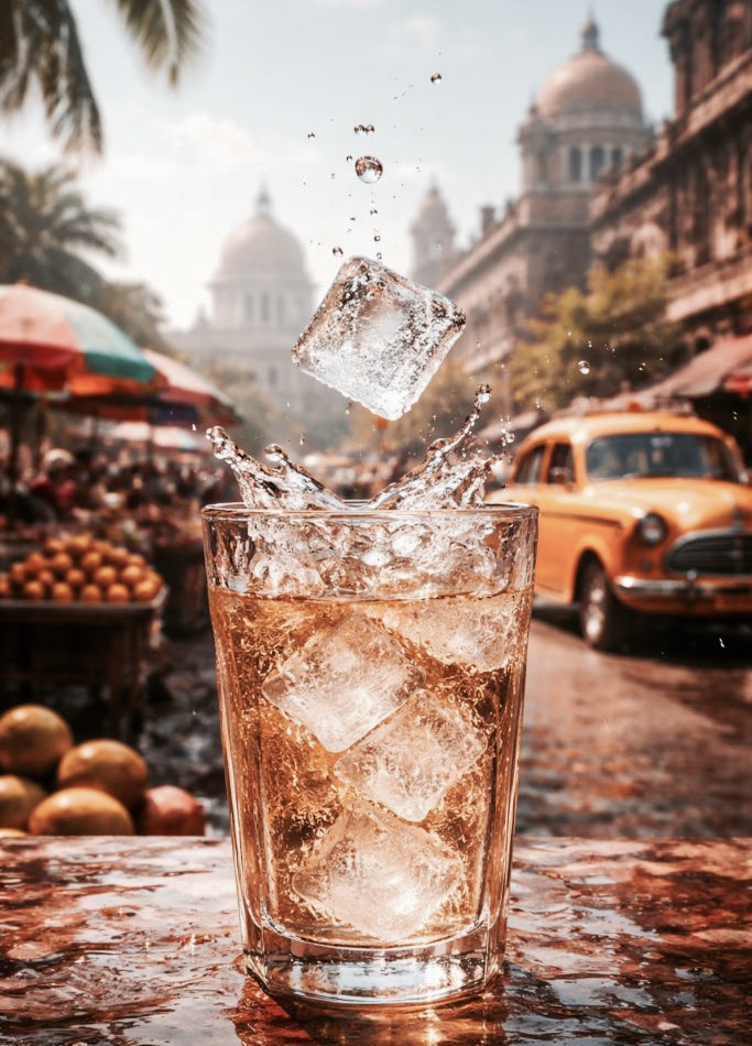 真夏のカルカッタで、グラスに落ちる一片の氷。