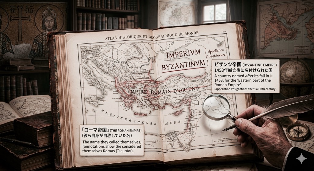 「ビザンツ帝国」という呼び名は、16世紀以降のヨーロッパの学者たちが便宜上作り上げた後付けの名称である。
