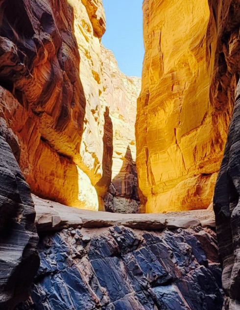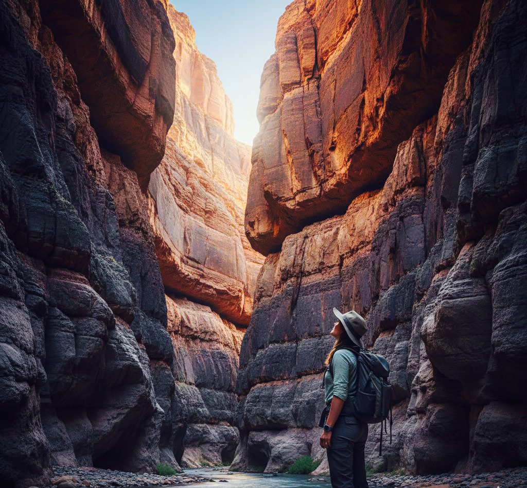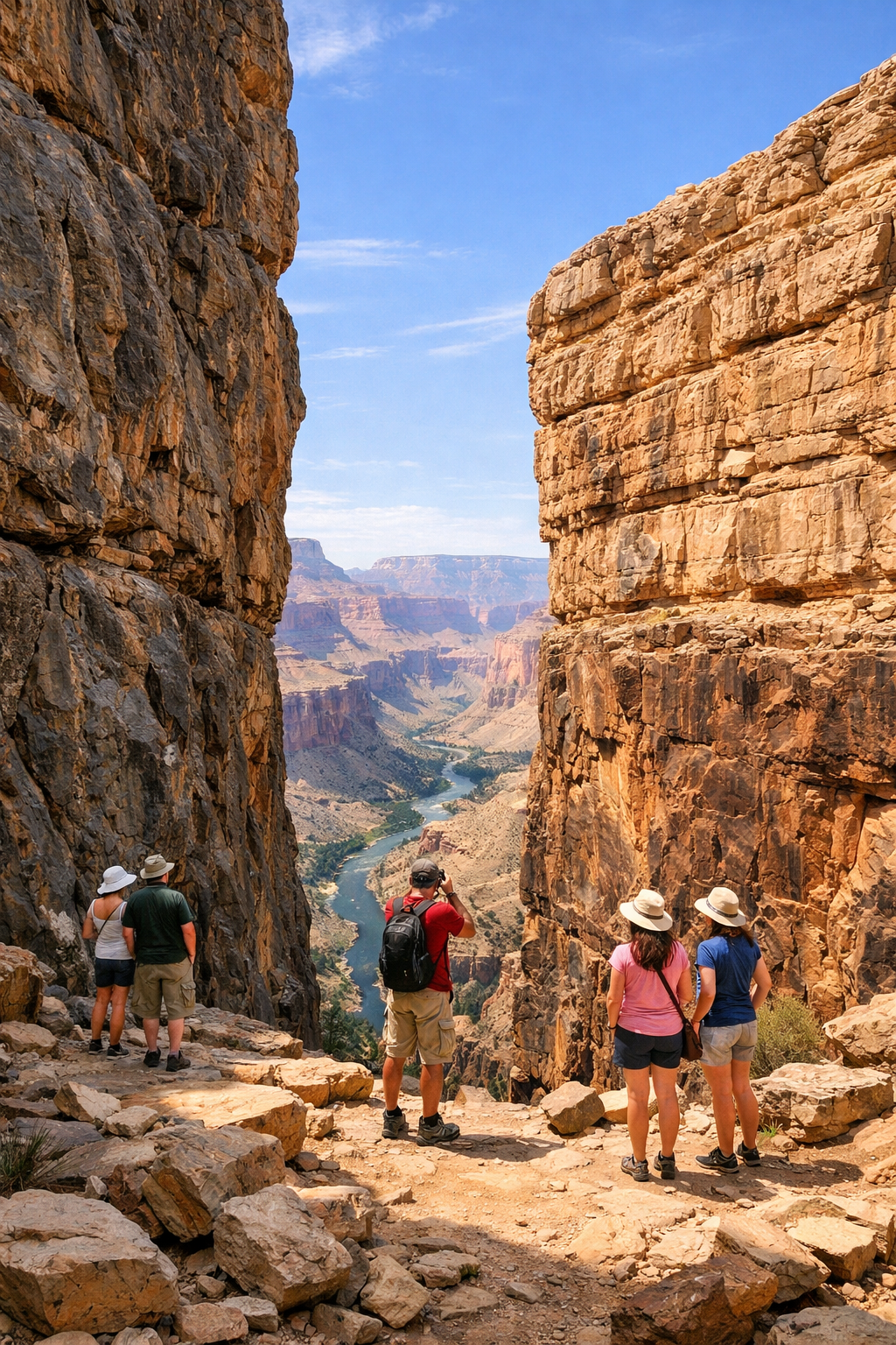 この峡谷の底近く、コロラド川のほとりには、地質学上の驚異が眠っている。そこでは、約17億年前に形成された古い花崗岩や片麻岩といった基盤岩の上に、わずか5億年前のタピーツ砂岩が直接のしかかっている。