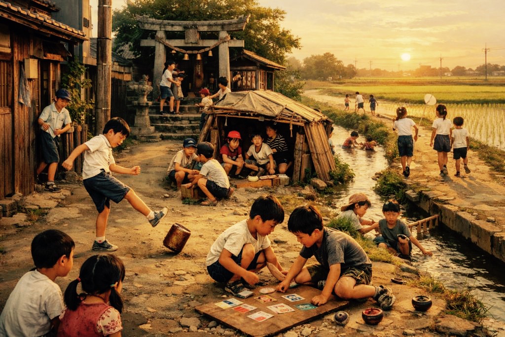 そこには、誰が設計したわけでもない、自然発生的な子供社会がありました。缶蹴り、ベーゴマ、メンコ、秘密基地、川遊び。大人の監視もなく、ルールブックも存在せず、子供たちだけで朝から夕暮れまで一日中遊び続けた世界。