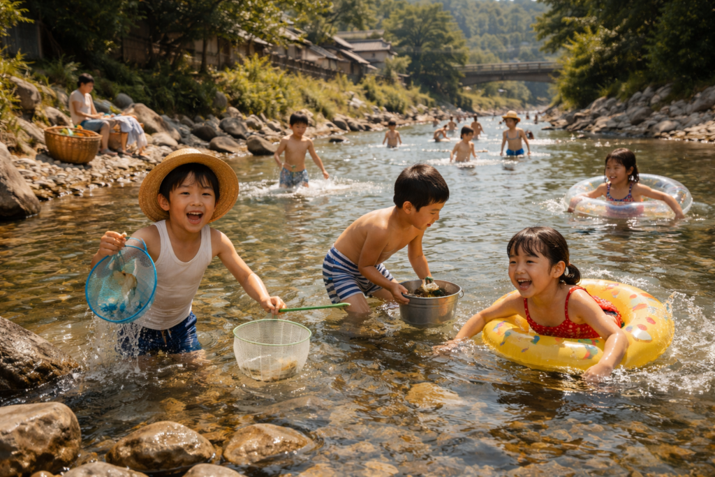川遊びは、自然とのインターフェースでした。水の冷たさ、流れの強さ、深みの怖さ。そこには自然に対する敬意と、判断力を育てる経験がありました。