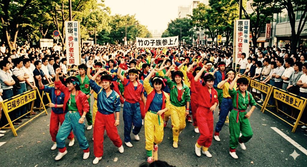 ディスコ文化が台頭し、若者の熱狂は屋内へと向かった。ファッションは商業化され、「個性的な服」が店頭に並んだ。歩行者天国には規制が入り、自由な空間は狭められた。