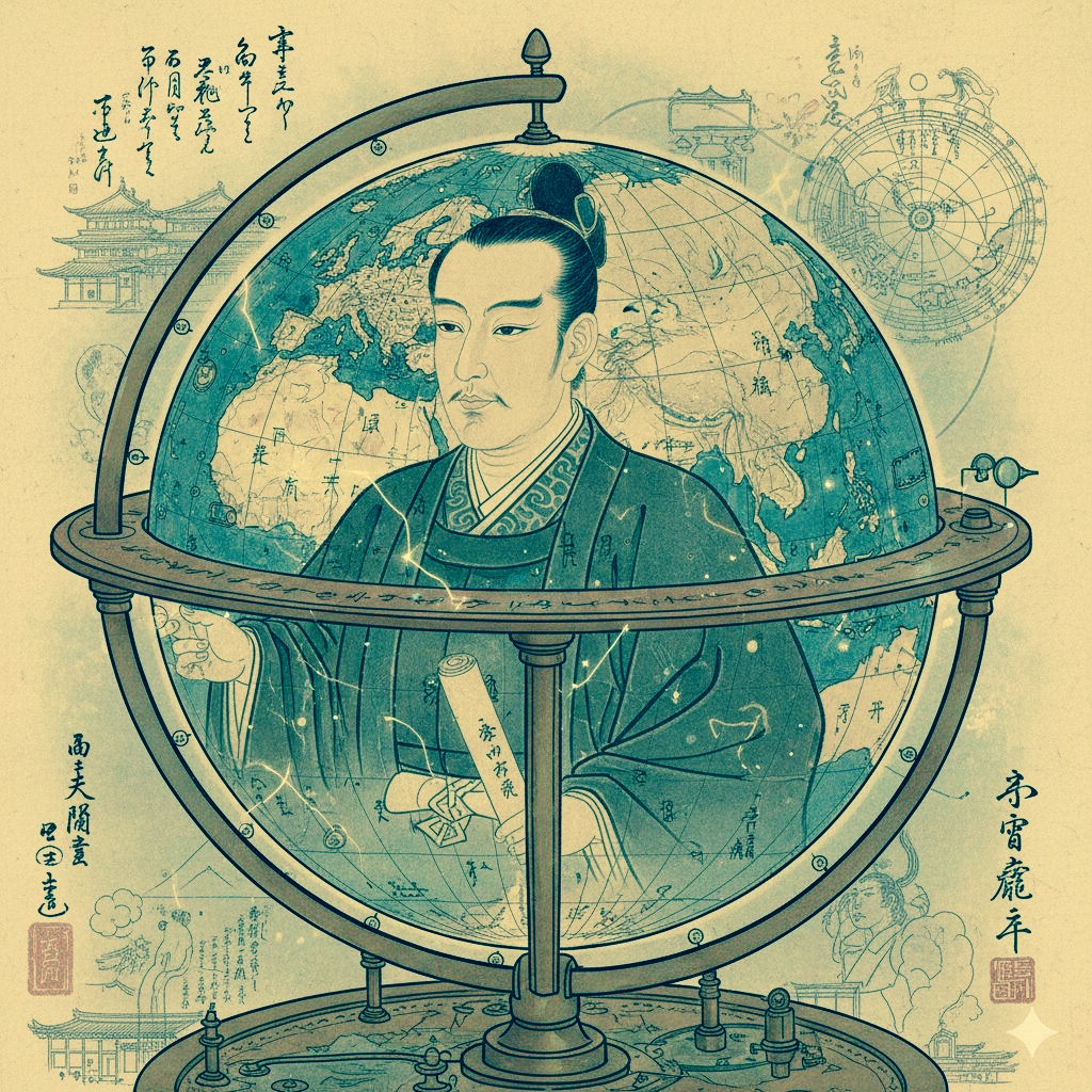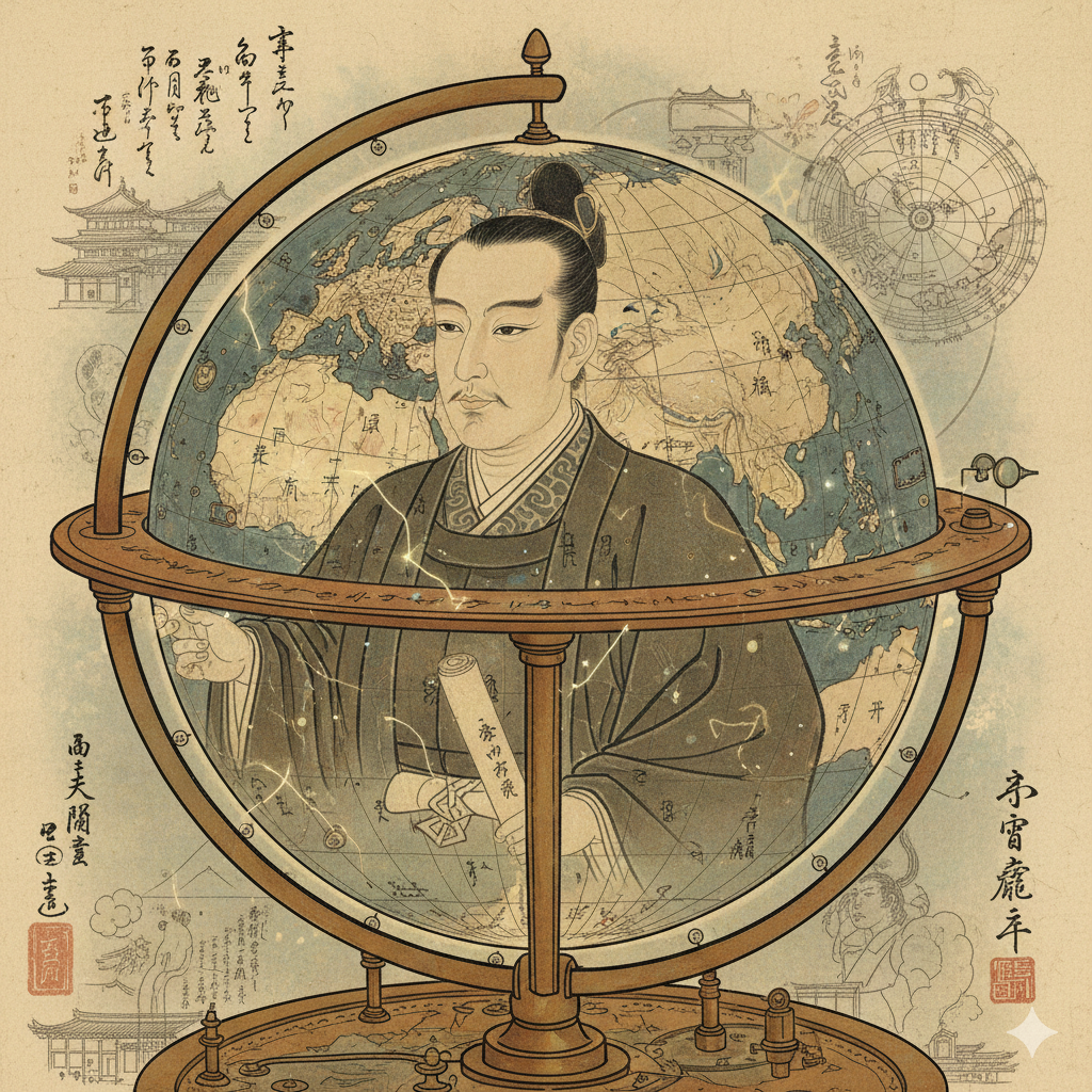 彼は日本初の百科事典『和漢三才図会』を編纂した人物で、西洋の知識に深く通じていた。当時、イタリア人宣教師マテオ・リッチが作成した世界地図『坤輿万国全図』が日本にもたらされており、知識人たちの間で大きな衝撃を与えていた。寺島良安は、この地図を参考に、立体的な地球儀を作ったのではないか―というのが、現在の定説である。