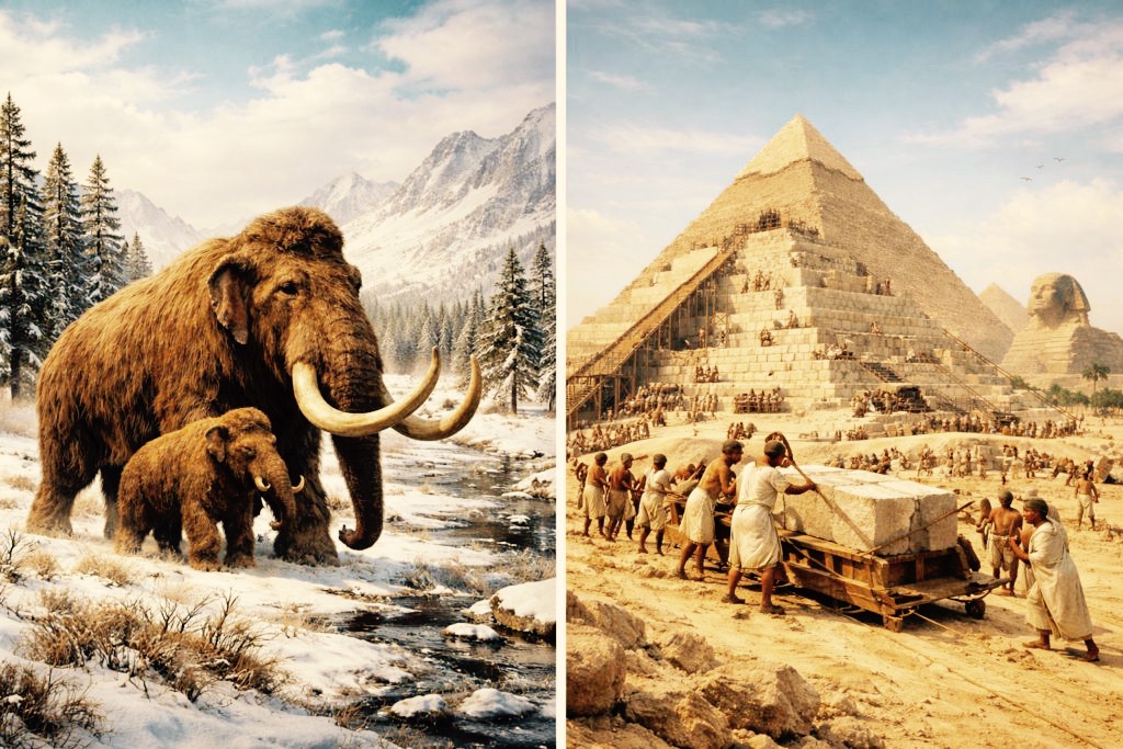 ピラミッドがそびえ立つ砂漠の空の下、同じ星の別の場所でマンモスが歩いていた。この事実だけで、世界は少し不思議に見えてきませんか?