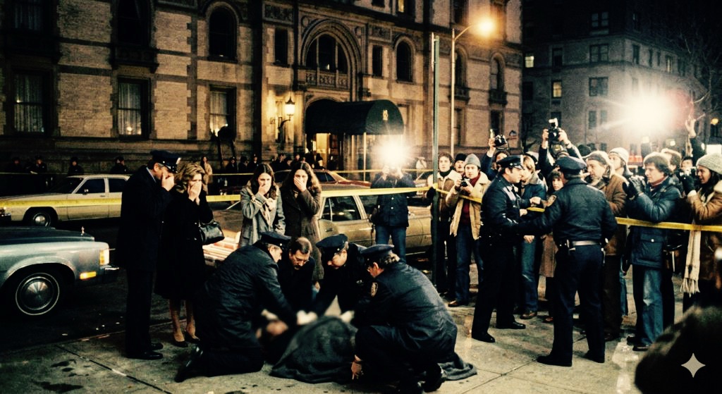 ニューヨーク、ダコタ・アパートメントの前。