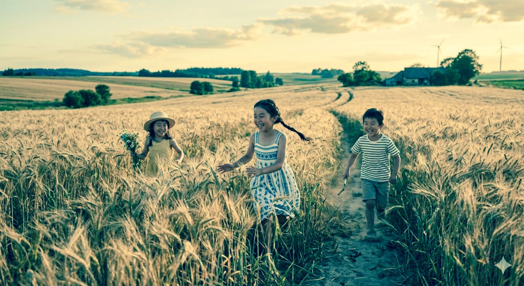 ライ麦畑で子どもたちが遊んでいる。