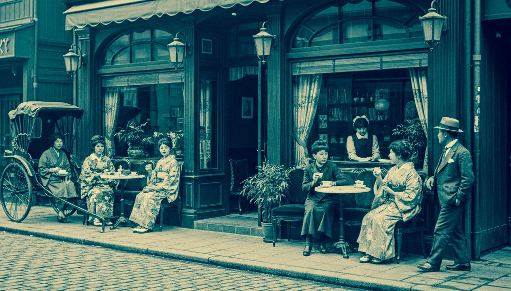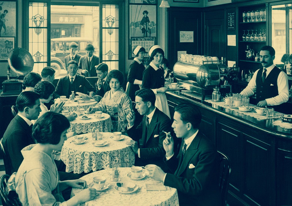 第一次世界大戦による経済発展で、都市部は急速に近代化しました。電灯が灯り、洋館が建ち並び、カフェでコーヒーを飲む人々の姿が見られるようになります。街にはモダンガール、モダンボーイと呼ばれる若者たちが闊歩し、洋服や洋食が日常に溶け込んでいきました。