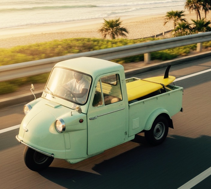 1990年、桑田佳祐監督の映画『稲村ジェーン』は、多くの人々にミゼットの魅力を再認識させました。主人公ヒロシ(加勢大周)が、屋根にサーフボードを積んだミゼットで湘南の海へ向かうシーン──。